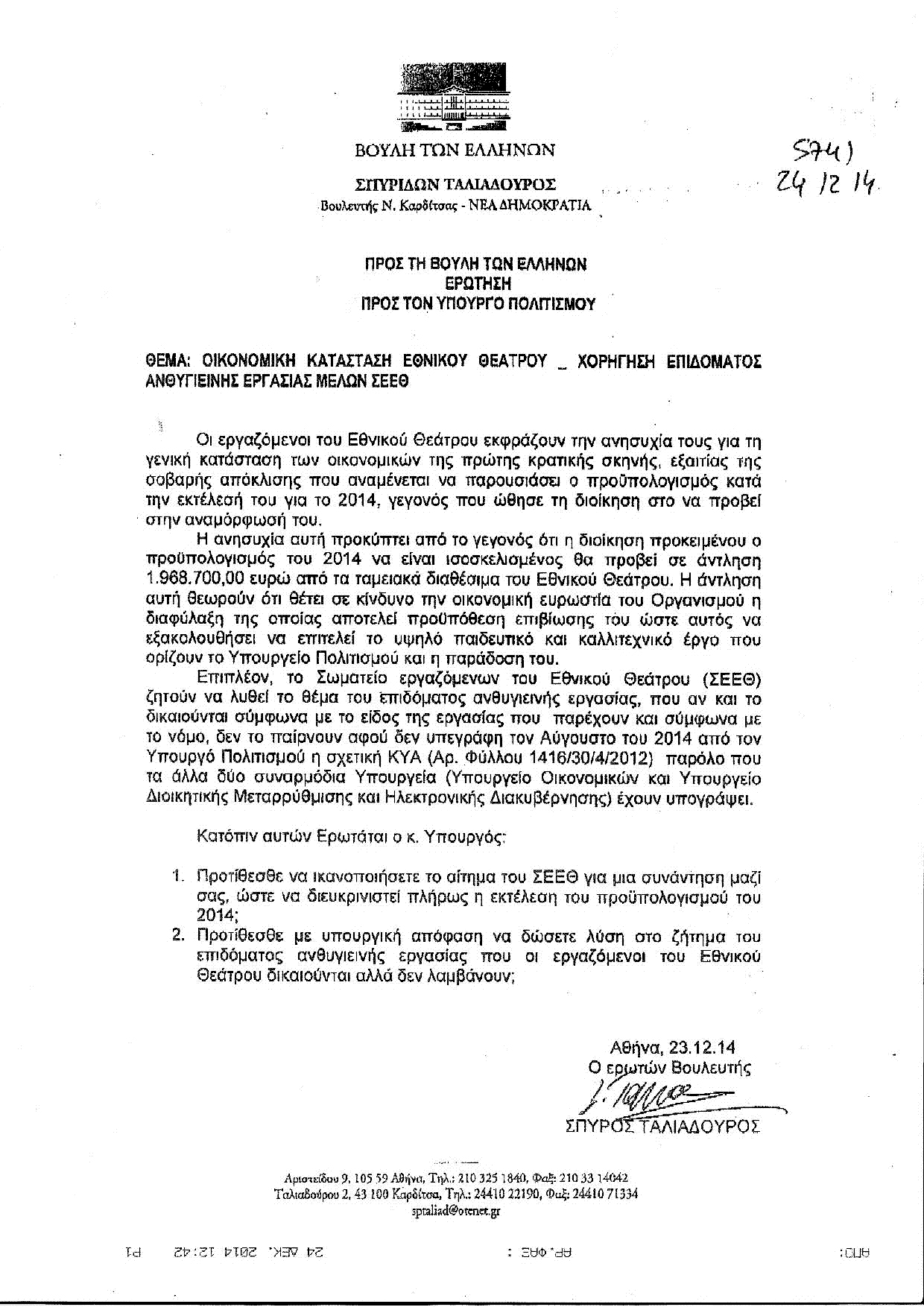 Eρώτηση στη Βουλή (Δ.Σ.)