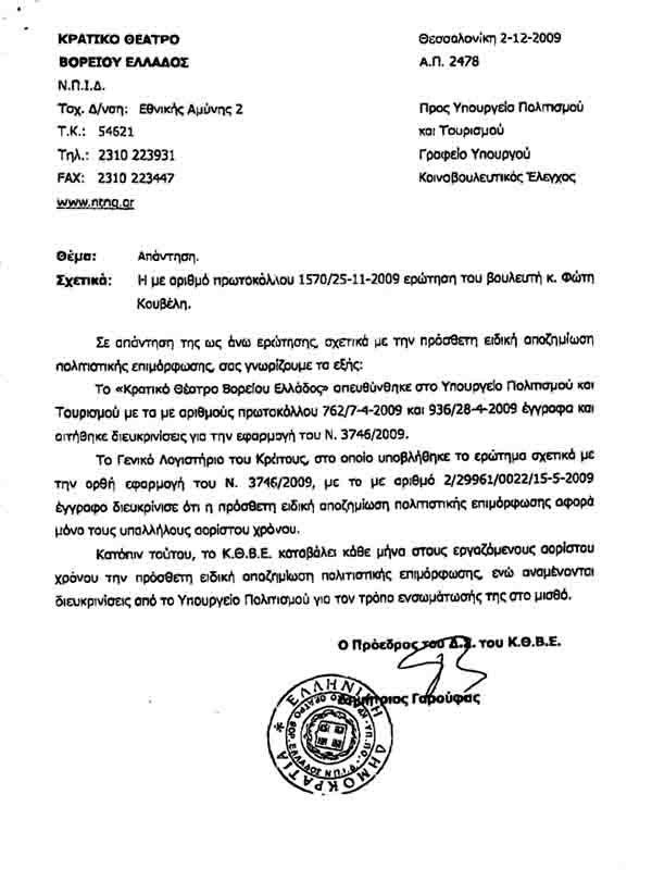 ΕΓΓΡΑΦΟ ΠΡΟΣ ΥΠ.ΠΟΛΙΤΙΣΜΟΥ Δ.Σ ΕΘΝΙΚΟΥ ΘΕΑΤΡΟΥ (George K.)
