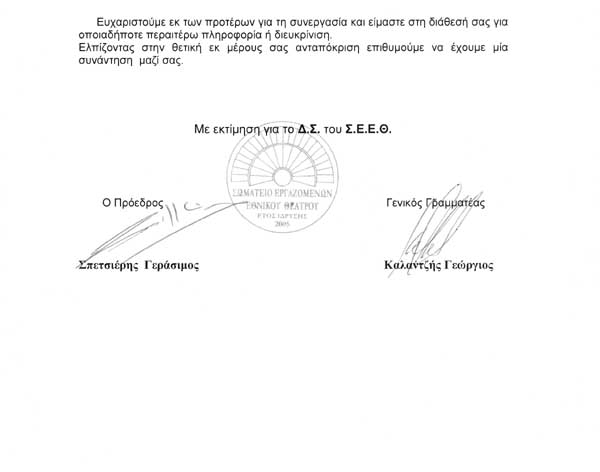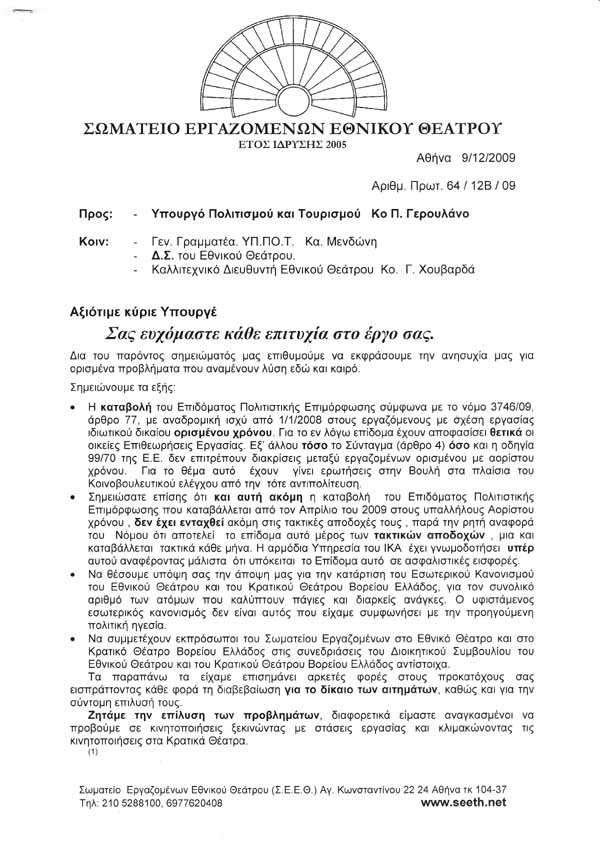 Ανακοινώσεις :: ΕΓΓΡΑΦΟ ΠΡΟΣ ΥΠ.ΠΟΛΙΤΙΣΜΟΥ Δ.Σ ΕΘΝΙΚΟΥ ΘΕΑΤΡΟΥ |